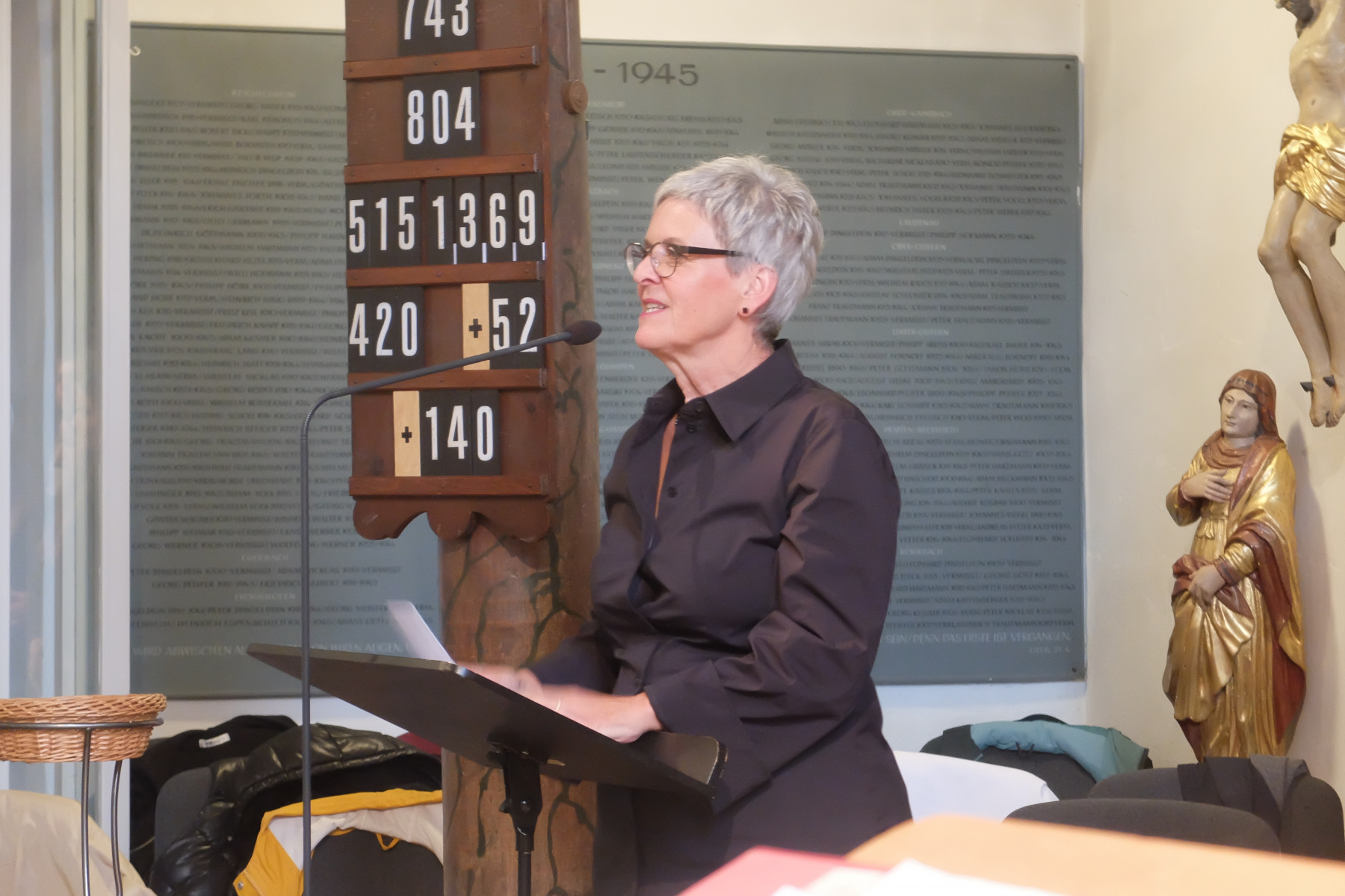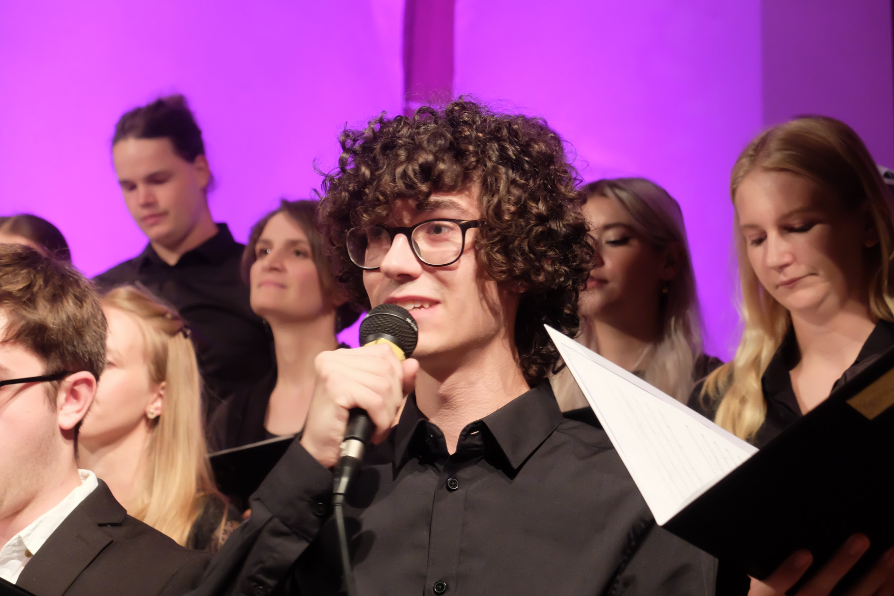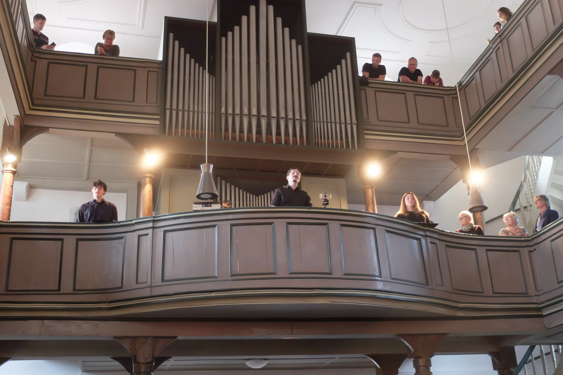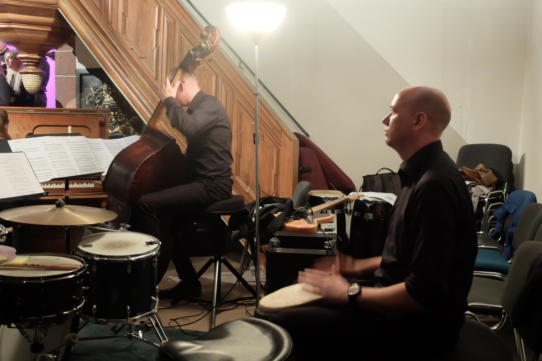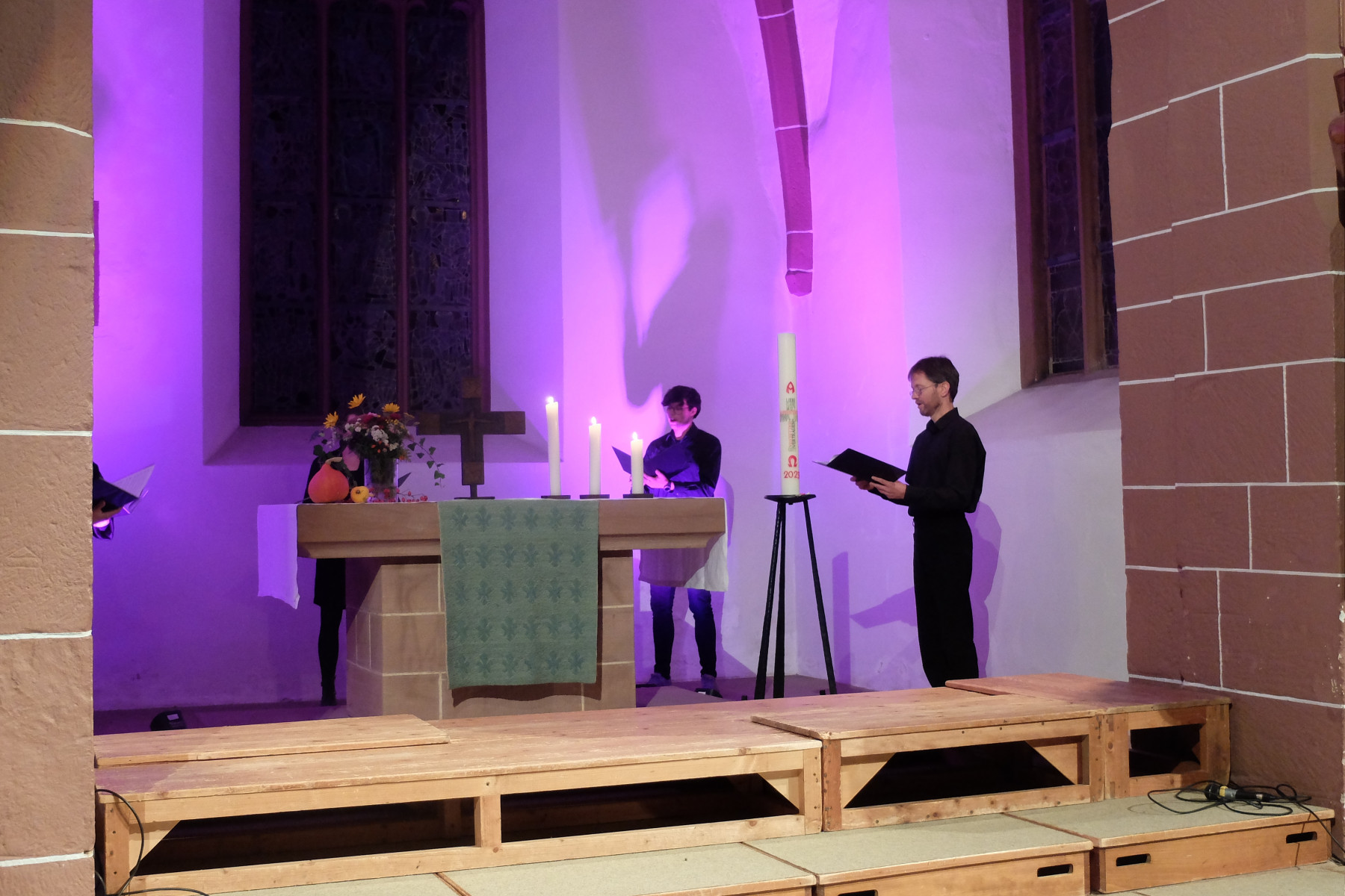 Zwischen Himmel und Erde: Alle Musikstücke verband der Bezug zu diesem Raum. Zu manchen Liedern erläuterten Mitglieder des Jugendchores den jeweiligen Inhalt, Hintergründe oder Rahmen. Begleitet wurden die jungen Sängerinnen und Sänger von einer kleinen Band, bestehend aus Tanja Spatz (Klavier), Martin Fußmann (Bass) und Clemens Frassine (Percussion).