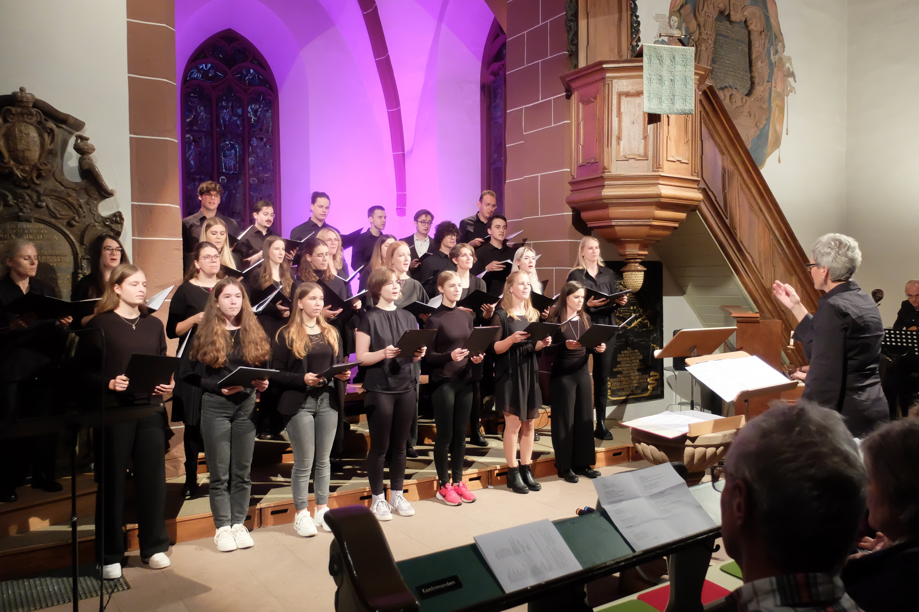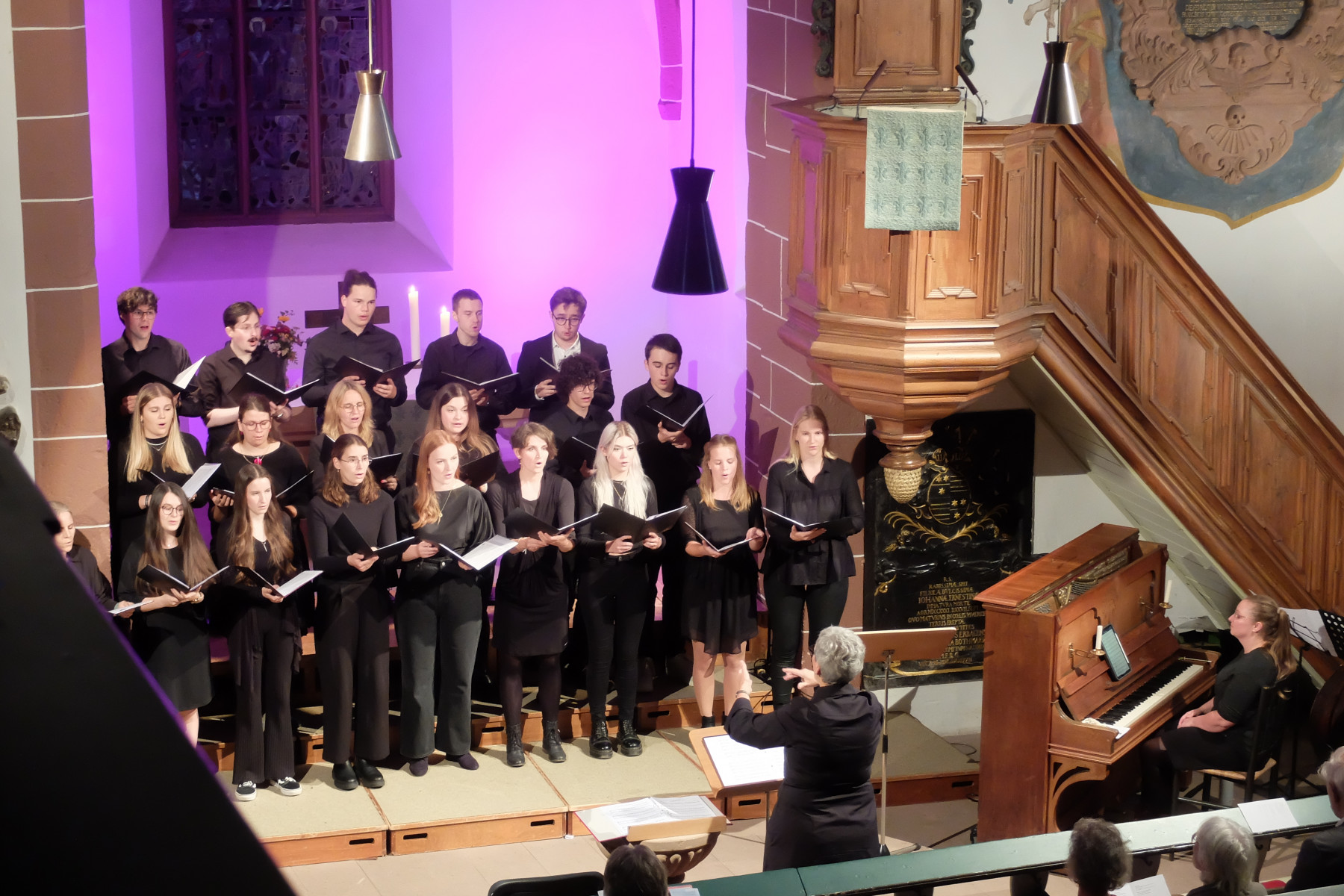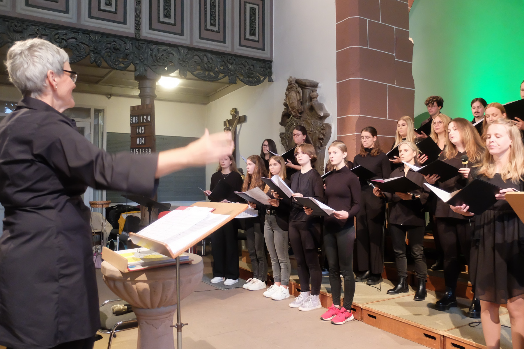 „Zwischen Himmel und Erde“ – so hieß das Programm, welches Andrea Dippon-Meyer mit dem Jugendchor der Evangelischen Michaelsgemeinde Reichelsheim einstudiert hatte und mit dem sie nun einen ebensoweit gespannten Klangraum in dem annähernd vollbesetzten Gotteshaus eröffnete: „Quer durch die Jahrhunderte und durch ganz verschiedene musikalische Stilrichtungen“ reichte die Auswahl, wie Pfarrerin Charlotte Voß umriss.